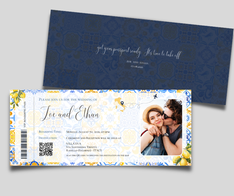 Lemon Amalfi Boarding Pass Wedding Invitation